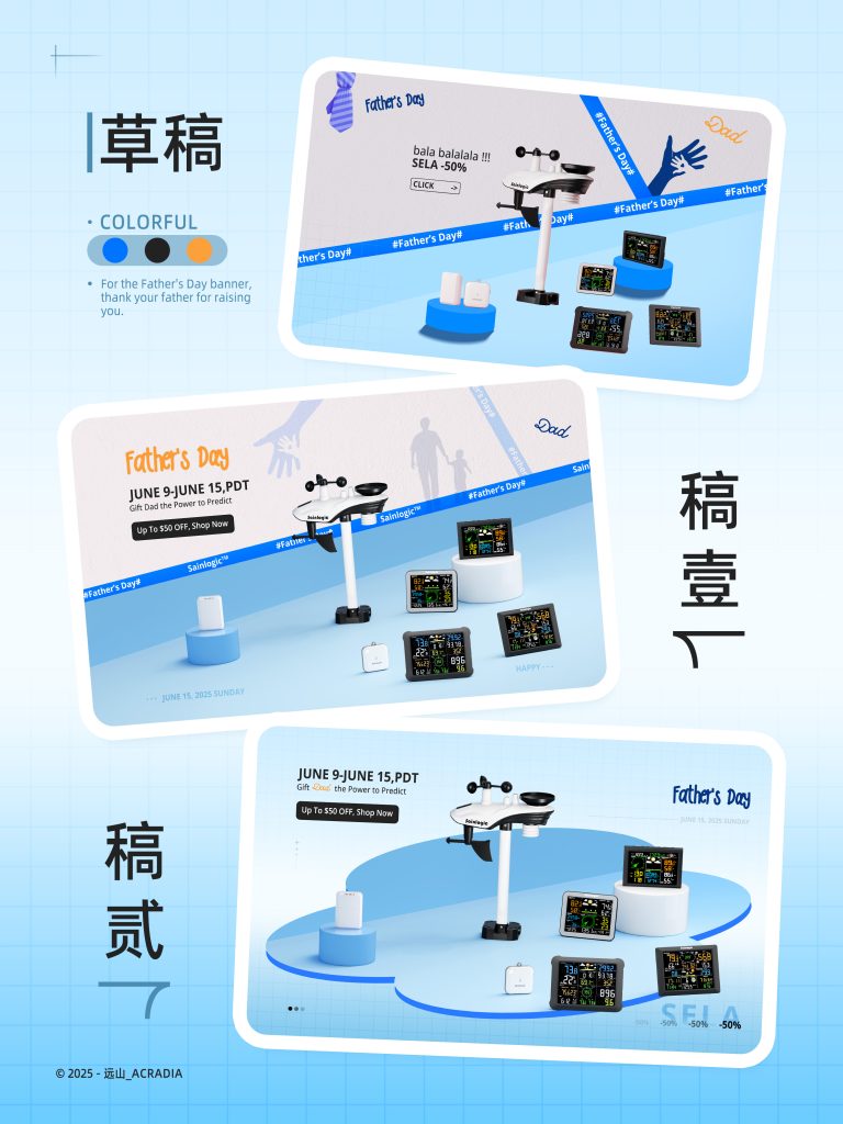 2025年父亲节 贸易站 Banner图, 渲染了张简单的图做为底图, 在找了个参考后期设计合成.