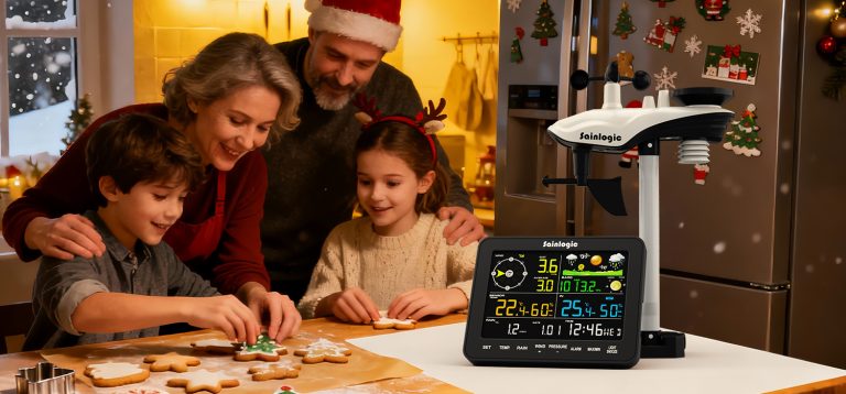 气象仪SA6圣诞节 亚马逊 店铺装修 2:1视频封面,即梦生成背景 + 渲染带阴影的白底图 + 调色